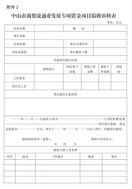 3.中山市商贸流通业发展专项资金项目验收审核表。